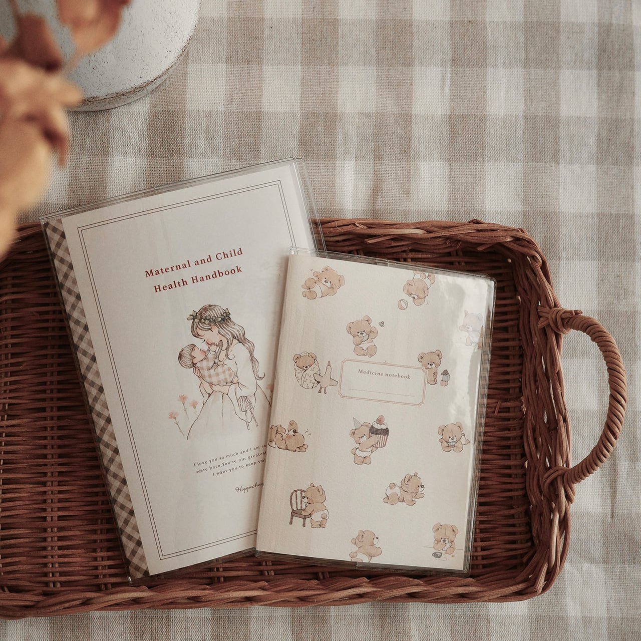 【むちっくまベビー総柄】お薬手帳カバー